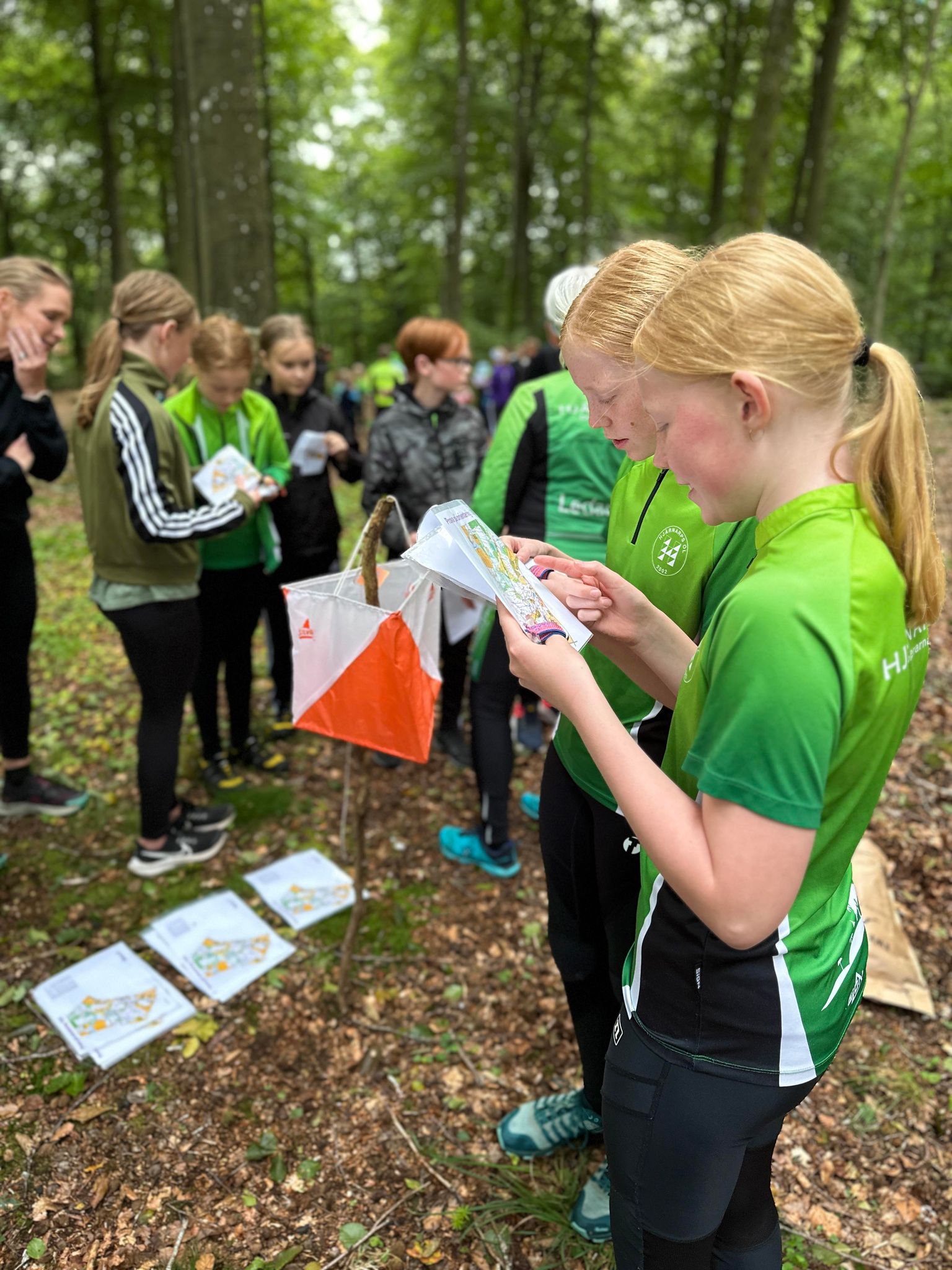 I den grön gruppen orienterar vi efter tydliga, sammanhängande nät av vägar, stigar, staket, stenmurar, vattendrag, öppen mark eller liknande. Lätta kontroller på eller alldeles intill själva vägen, stigen, vattendraget, den öppna marken osv.
